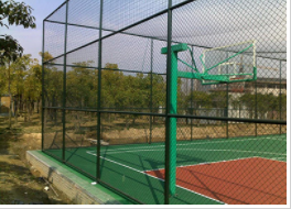 耐水性好的合成纤维(聚乙烯类),硅PU篮球场的围网的固定件不能有锋利的边缘,围网制作要巩固,无凸出部分,门把手、门闩要荫蔽起来,避免给打球人形成危险,围网支柱的距离应根据围网的高度和基础的深度归纳考虑。